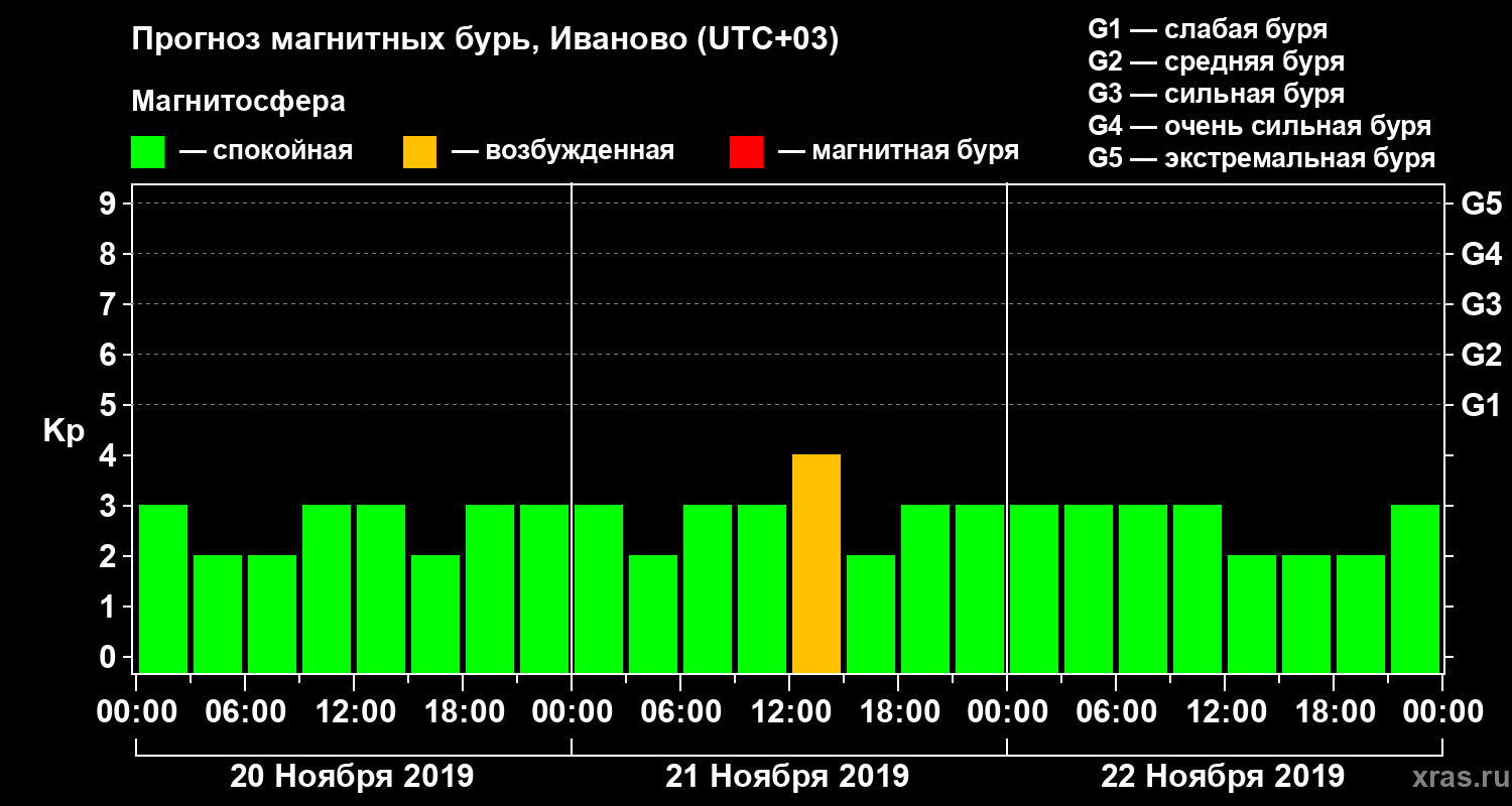 Прогноз магнитных бурь Иваново — 20 ноября 2019 года