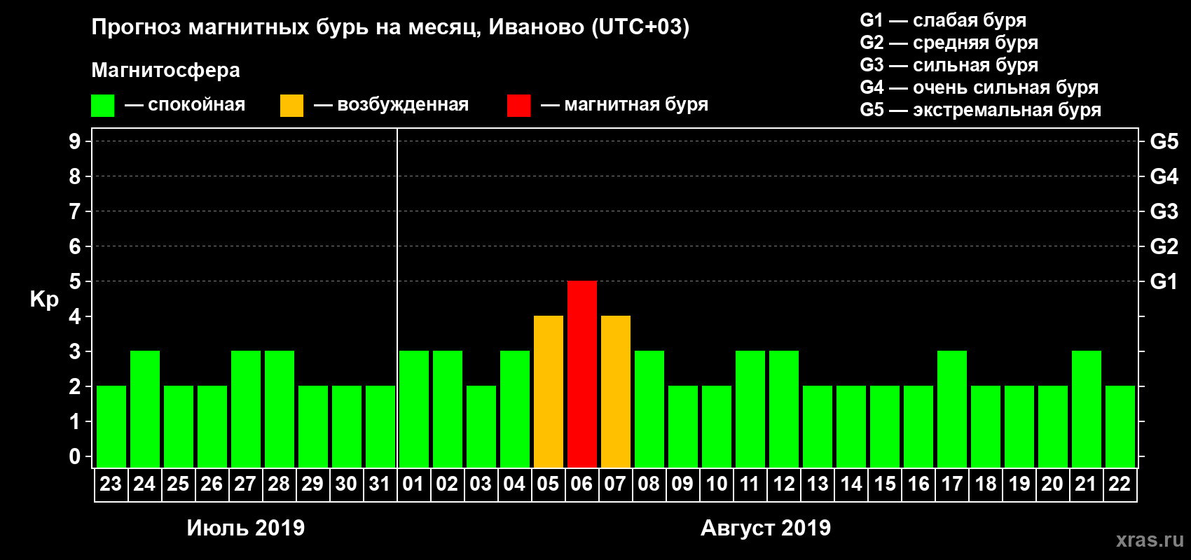 Прогноз магнитных бурь Иваново — 23 июля 2019 года
