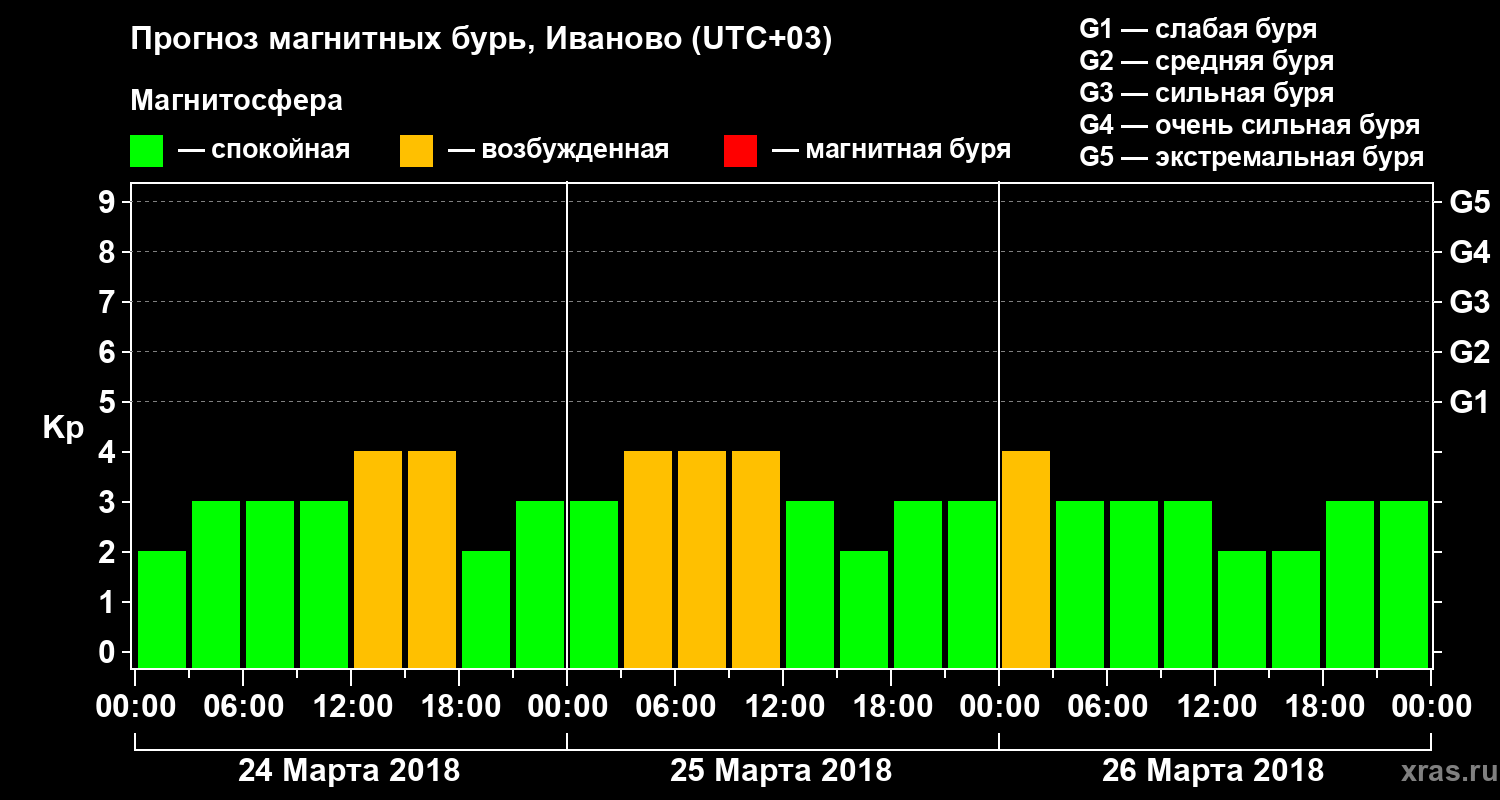 Прогноз магнитных бурь Иваново на 24 марта 2018 года