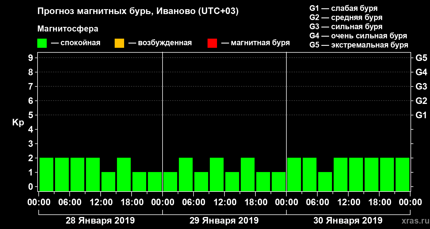 Прогноз магнитных бурь Иваново — 28 января 2019 года