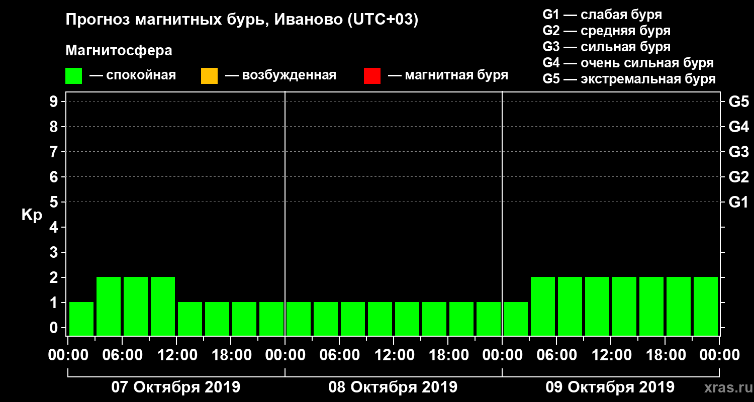Прогноз магнитных бурь Иваново — 7 октября 2019 года