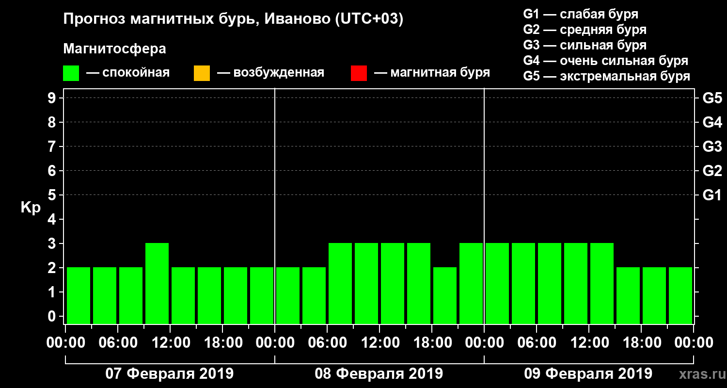 Прогноз магнитных бурь Иваново на 7 февраля 2019 года