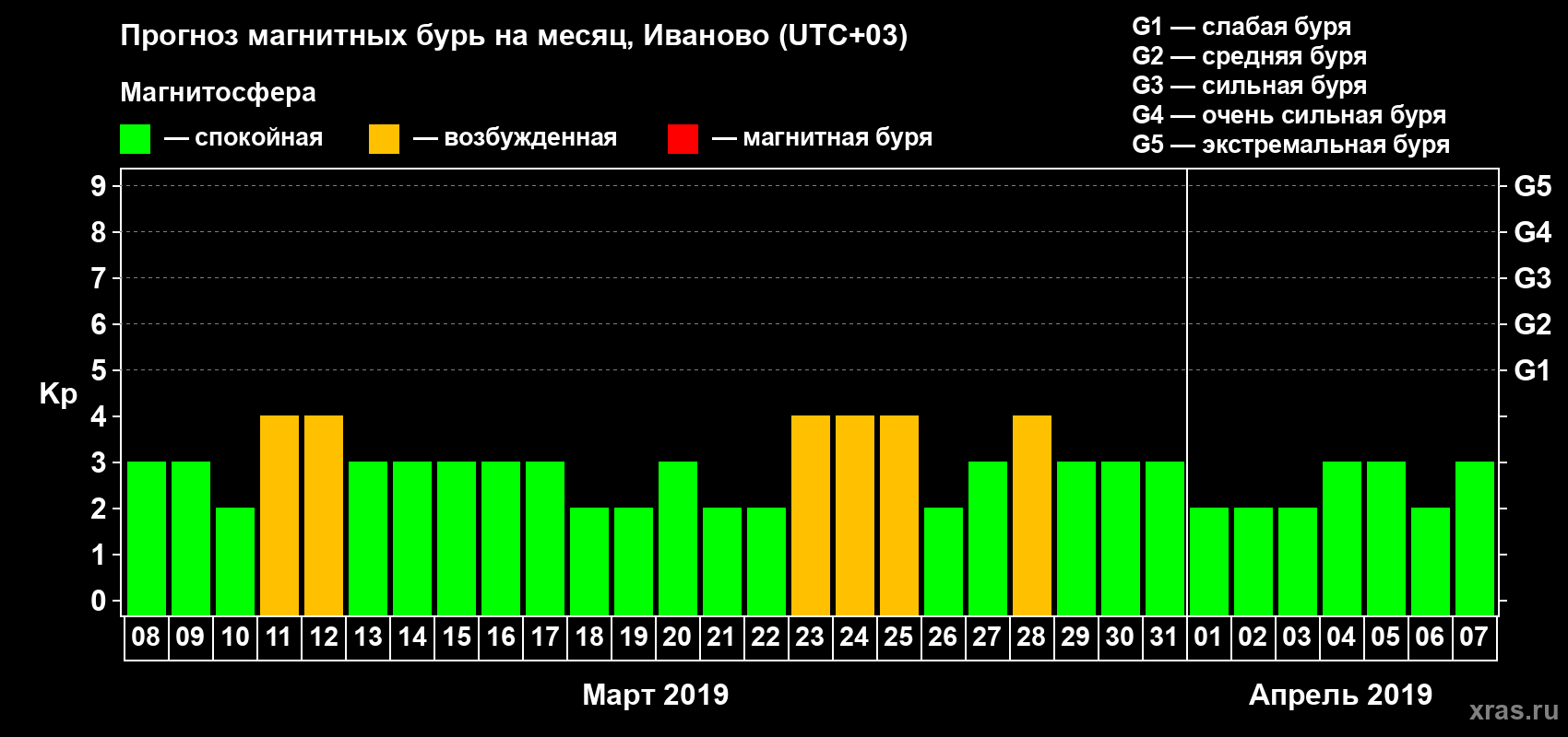 Прогноз магнитных бурь Иваново — 8 марта 2019 года