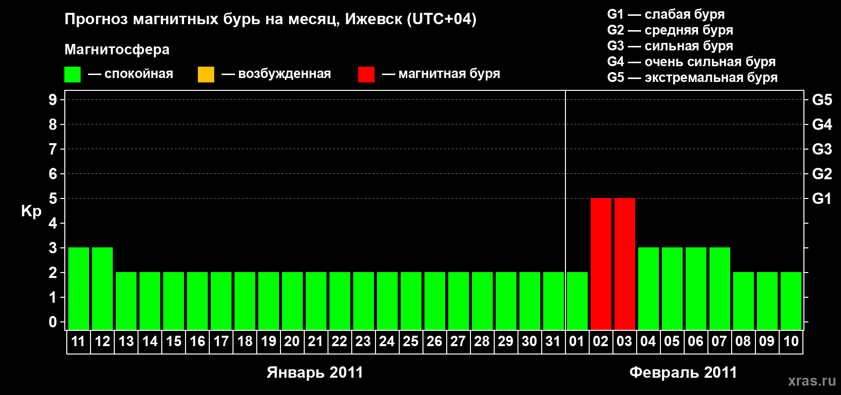 Прогноз магнитных бурь в Ижевске — 11 января 2011 года