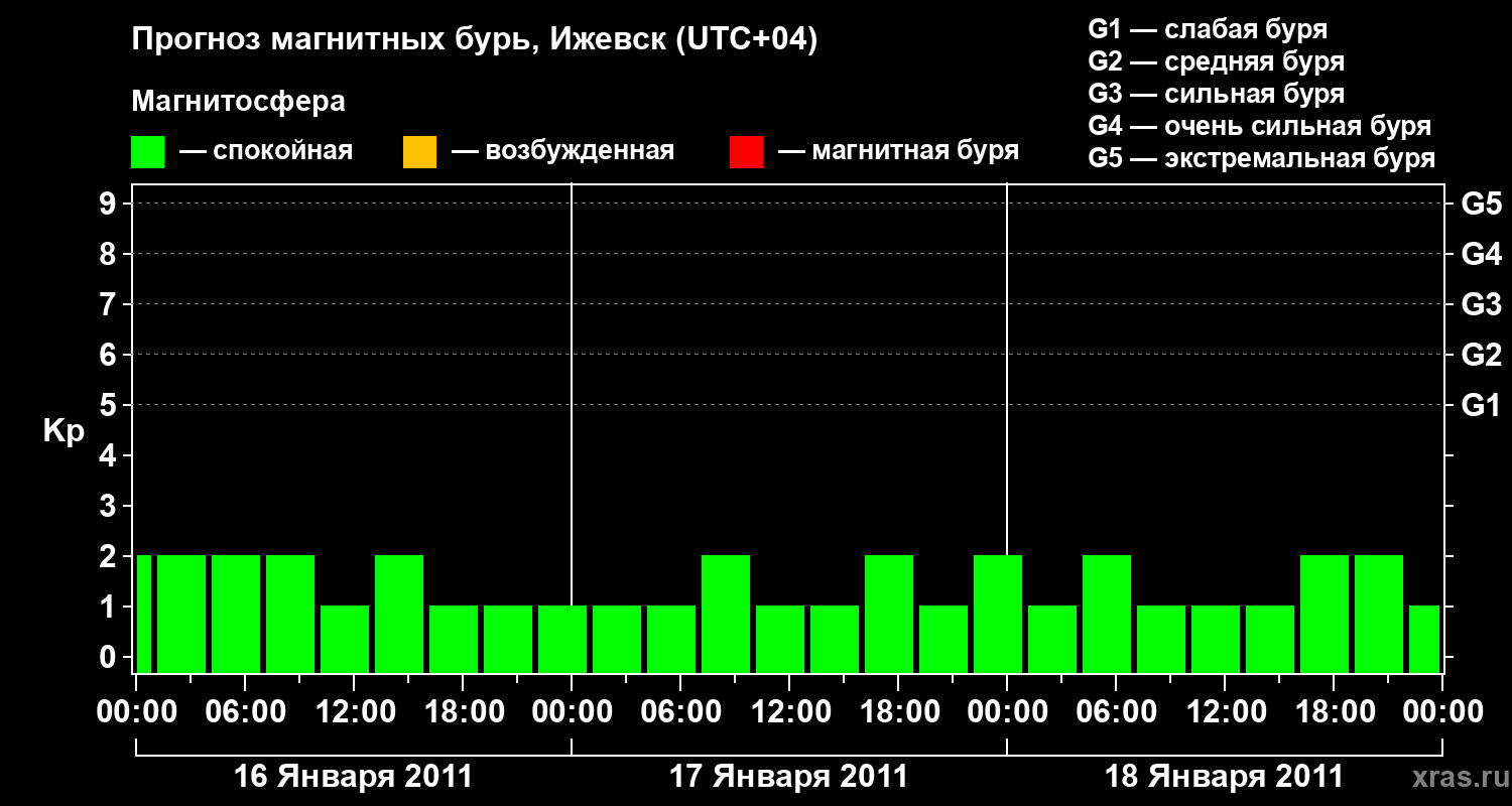 Прогноз магнитных бурь в Ижевске — 16 января 2011 года