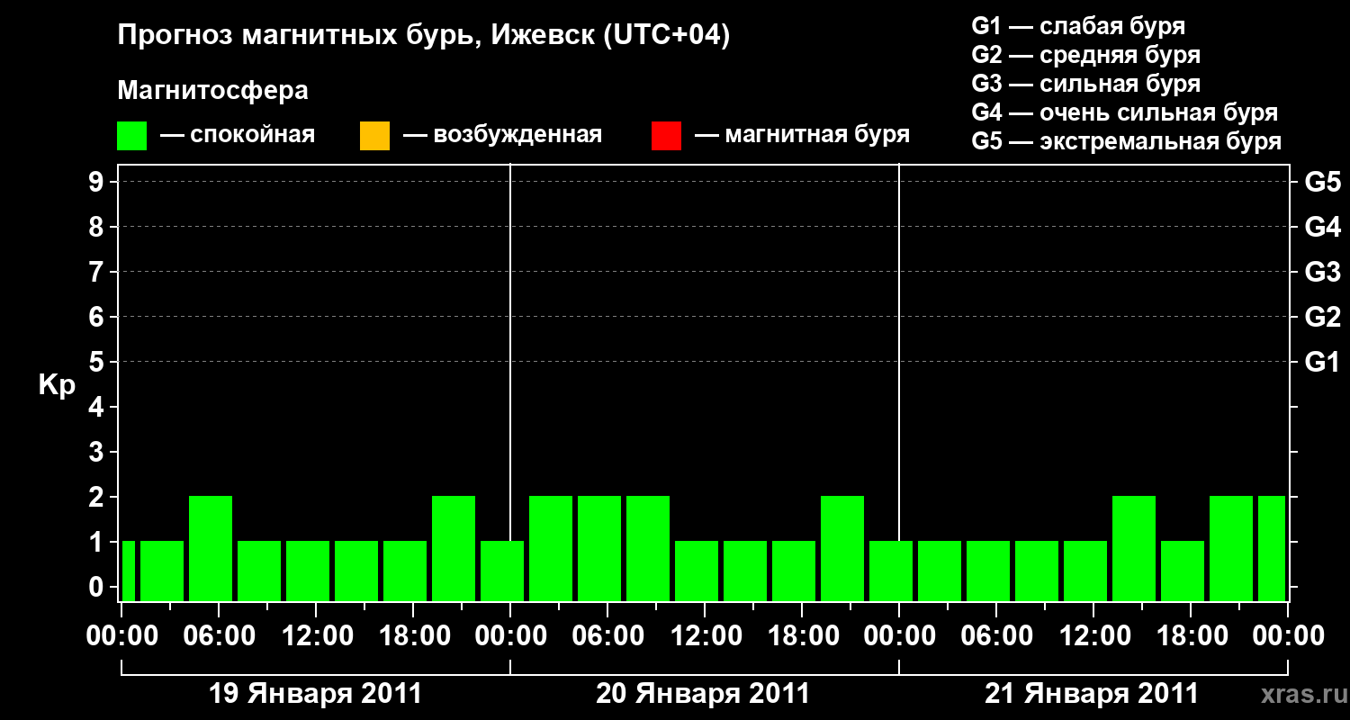 Прогноз магнитных бурь в Ижевске — 19 января 2011 года