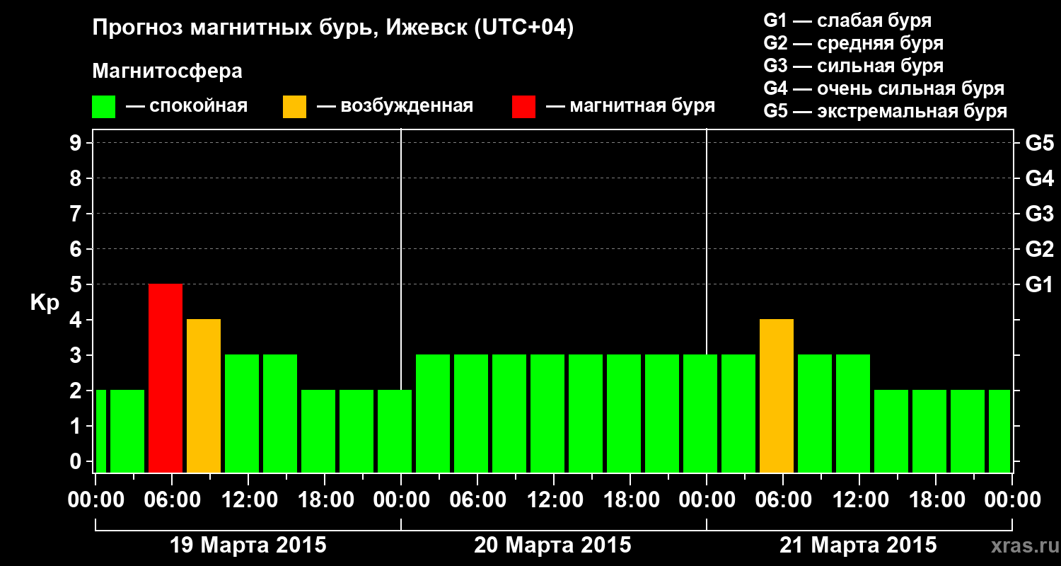 Прогноз магнитных бурь в Ижевске — 19 марта 2015 года