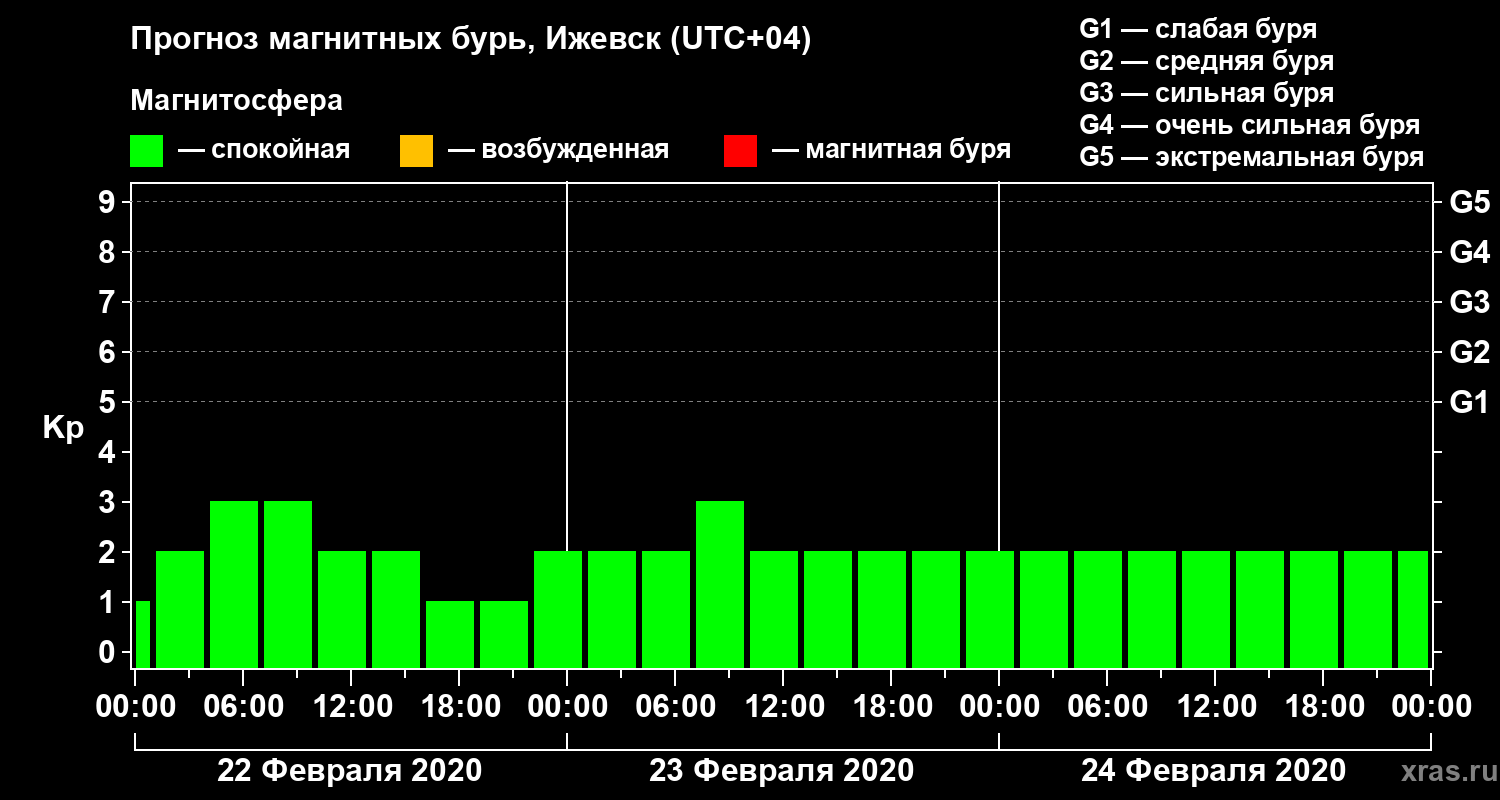Прогноз магнитных бурь в Ижевске на 22 февраля 2020 года