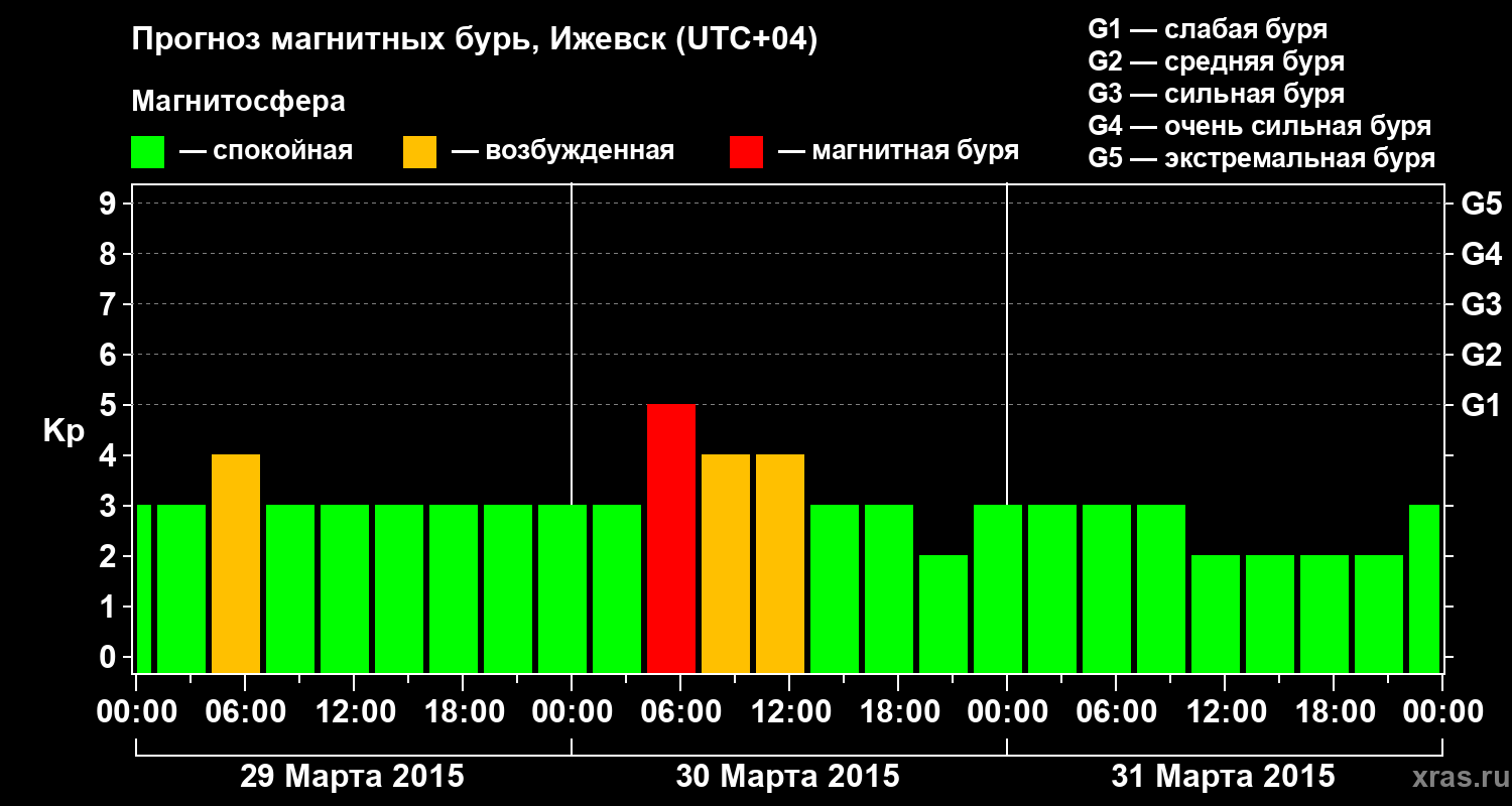 Прогноз магнитных бурь в Ижевске — 29 марта 2015 года