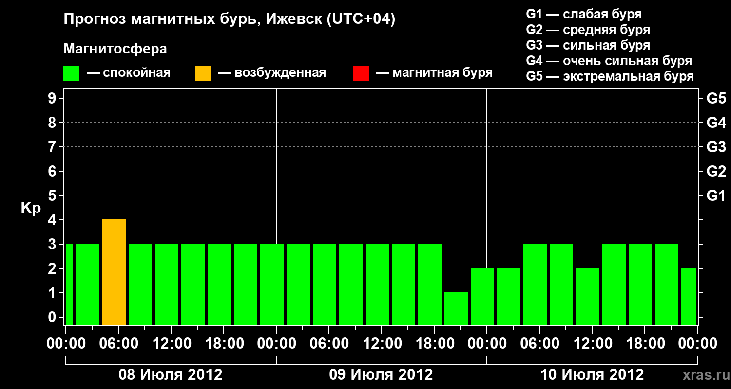 Прогноз магнитных бурь в Ижевске — 8 июля 2012 года