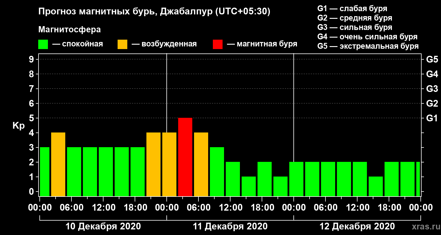 Прогноз магнитных бурь в Джабалпуре — 10 декабря 2020 года