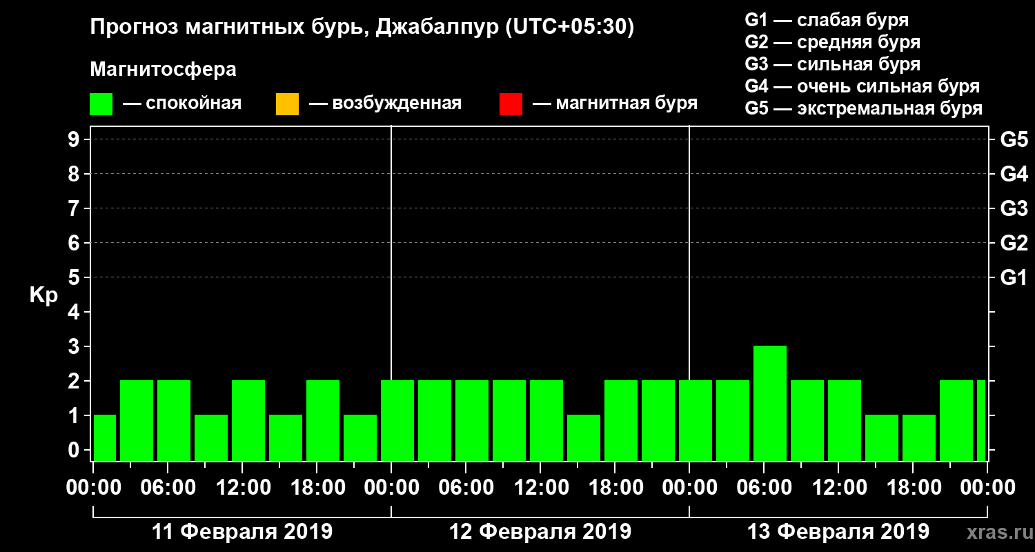 Прогноз магнитных бурь в Джабалпуре — 11 февраля 2019 года