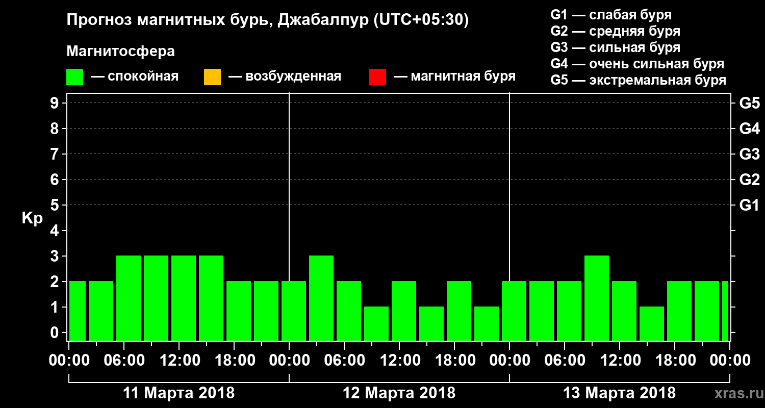 Прогноз магнитных бурь в Джабалпуре — 11 марта 2018 года