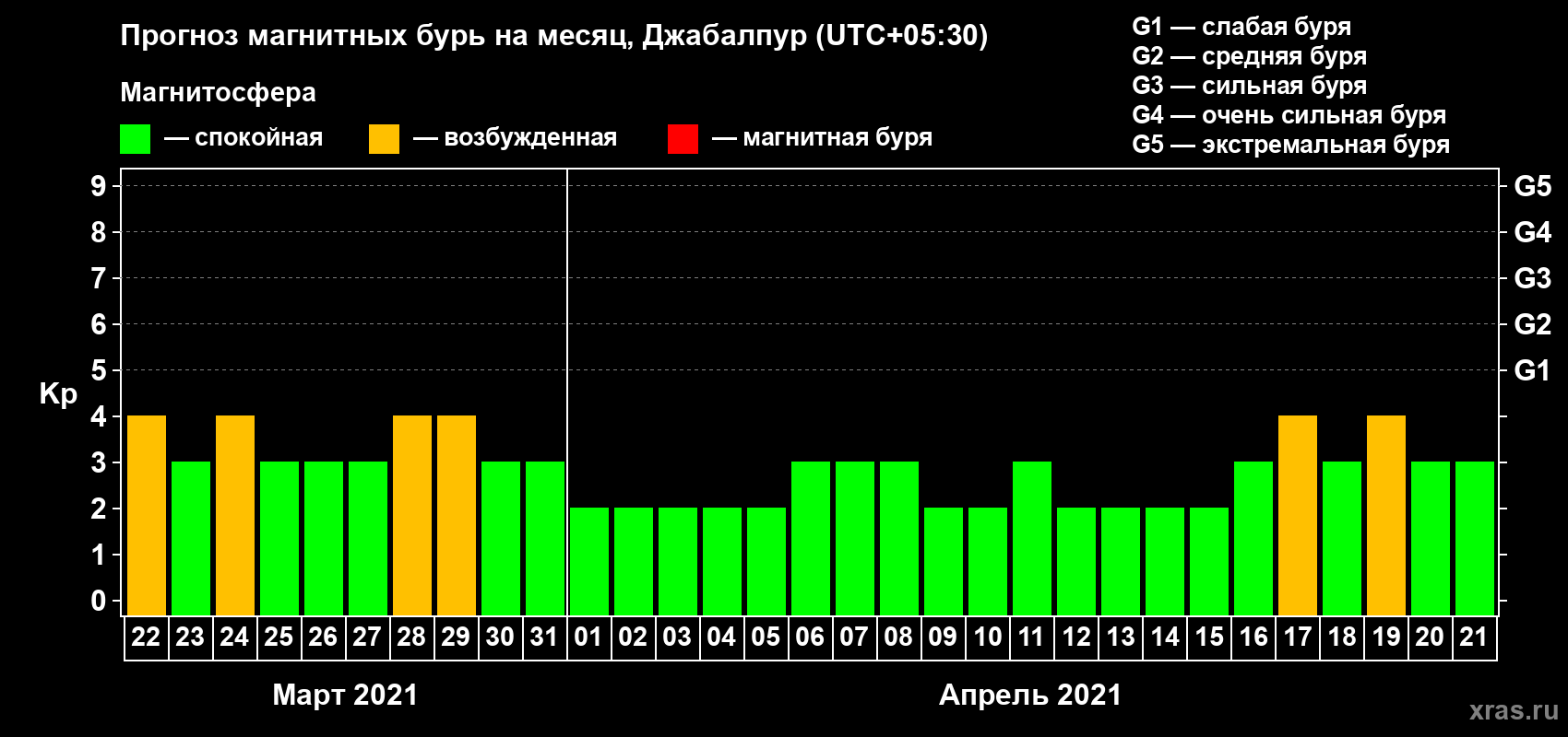 Прогноз магнитных бурь в Джабалпуре — 22 марта 2021 года