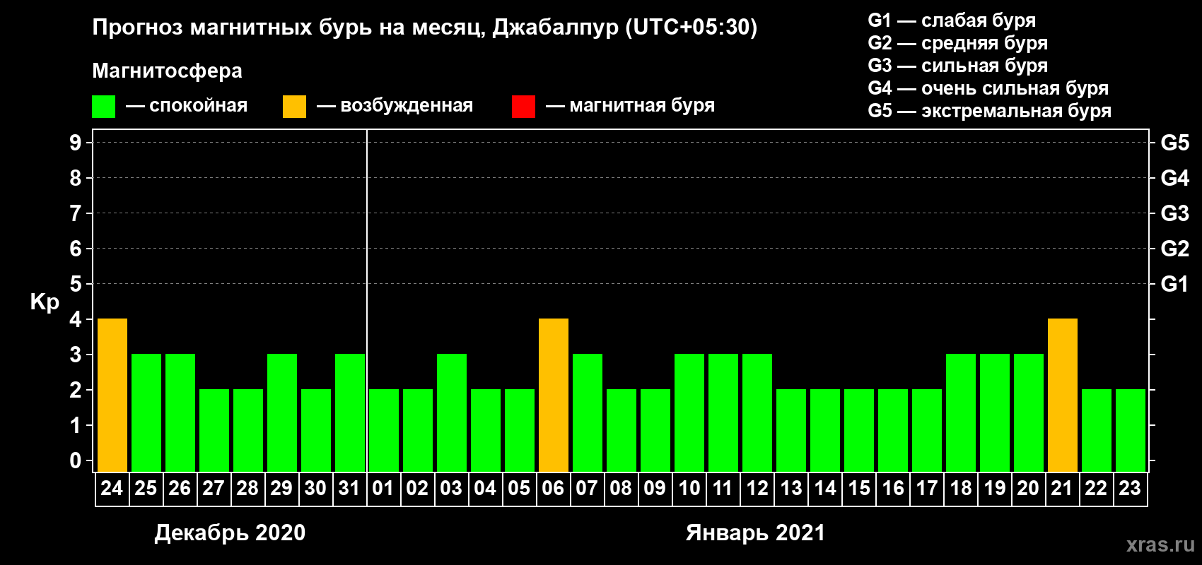 Прогноз магнитных бурь в Джабалпуре — 24 декабря 2020 года