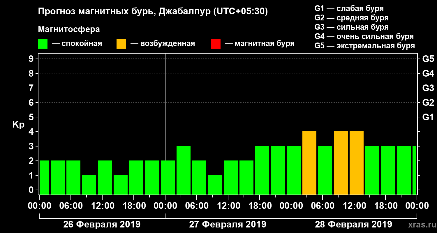 Прогноз магнитных бурь в Джабалпуре — 26 февраля 2019 года