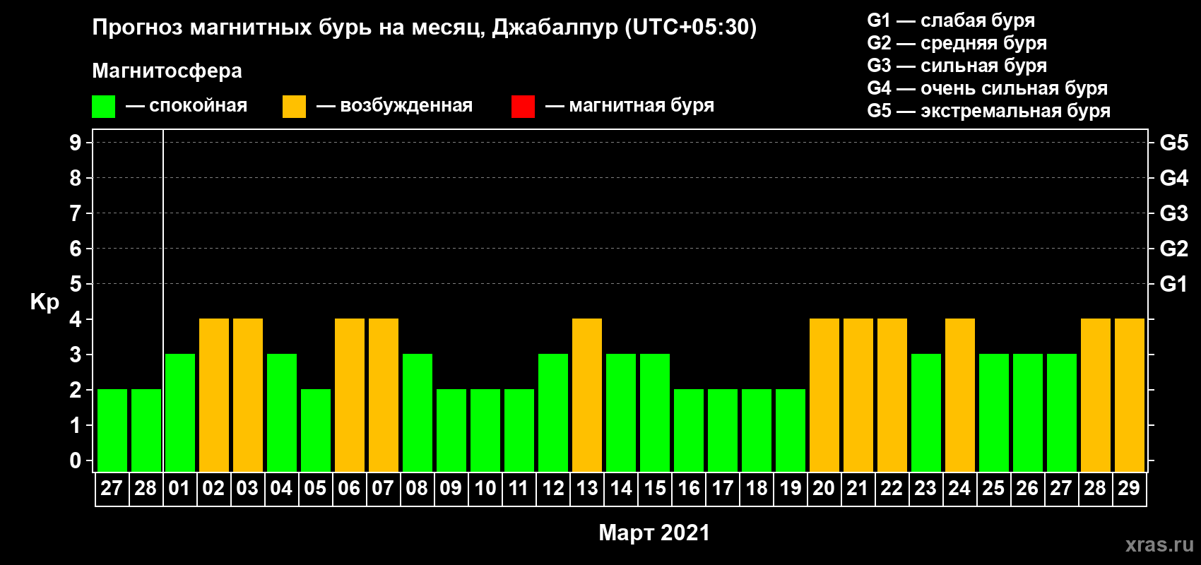 Прогноз магнитных бурь в Джабалпуре — 27 февраля 2021 года