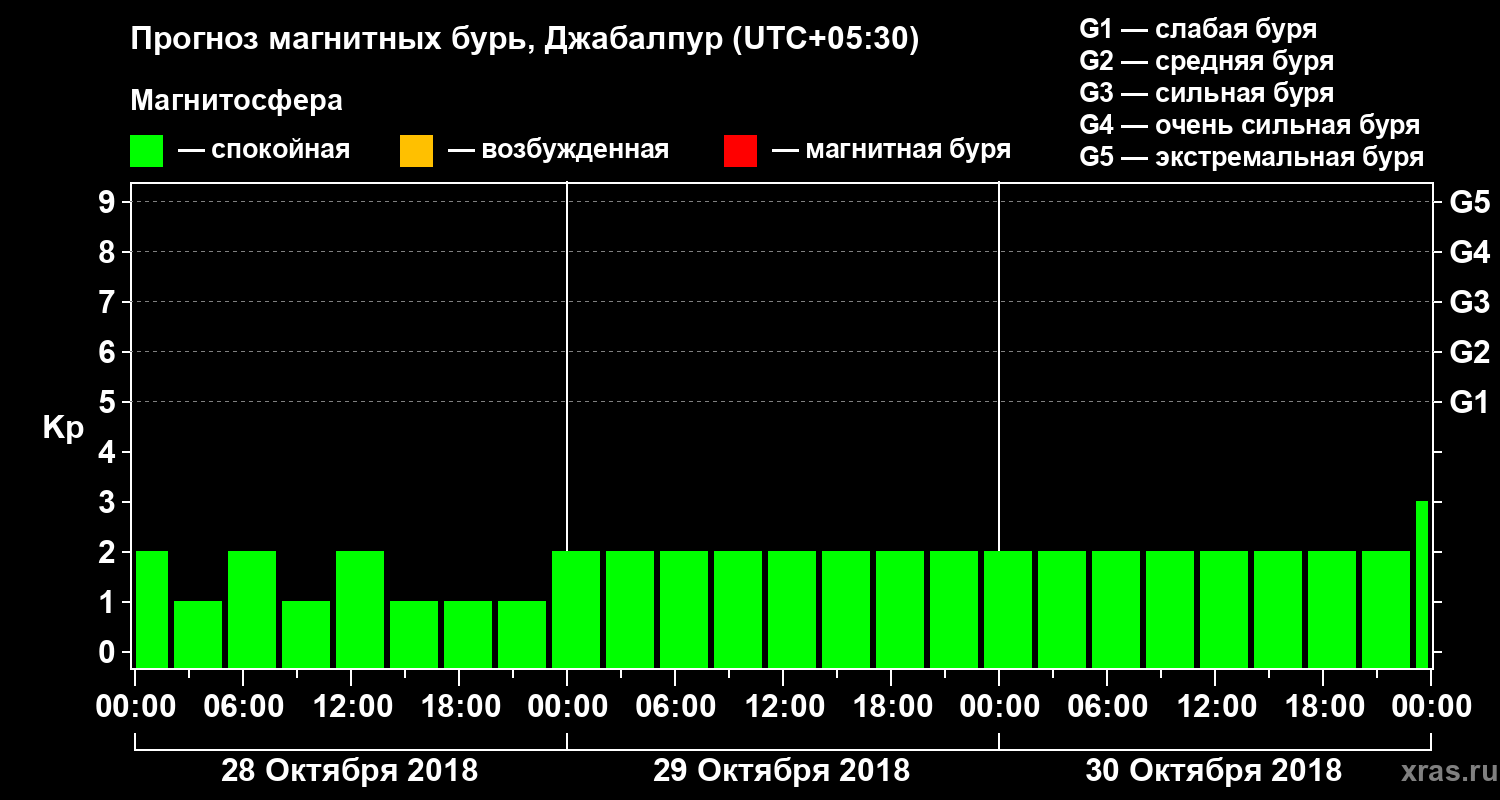 Прогноз магнитных бурь в Джабалпуре — 28 октября 2018 года