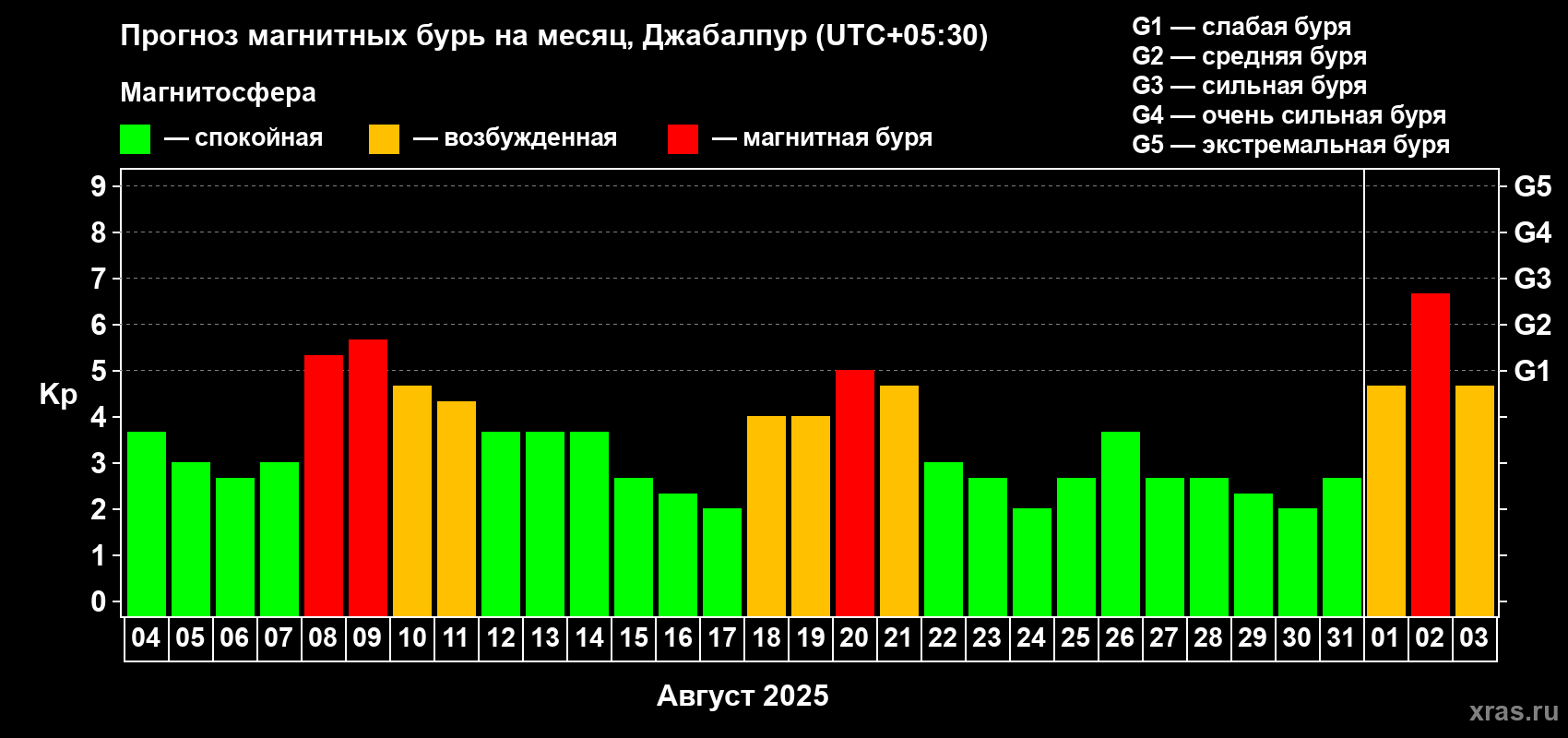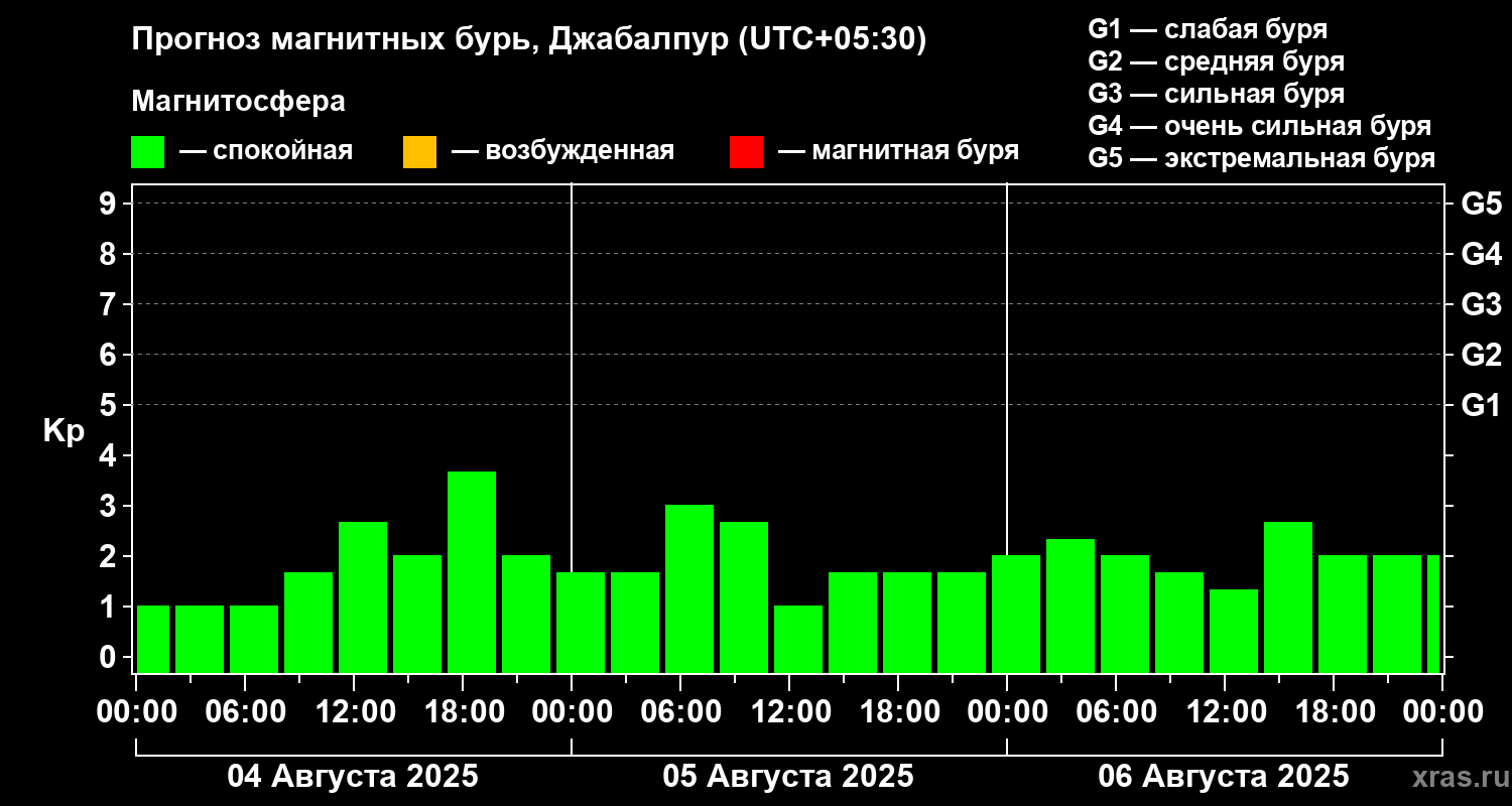 Прогноз магнитных бурь в Джабалпуре — 4 августа 2025 года