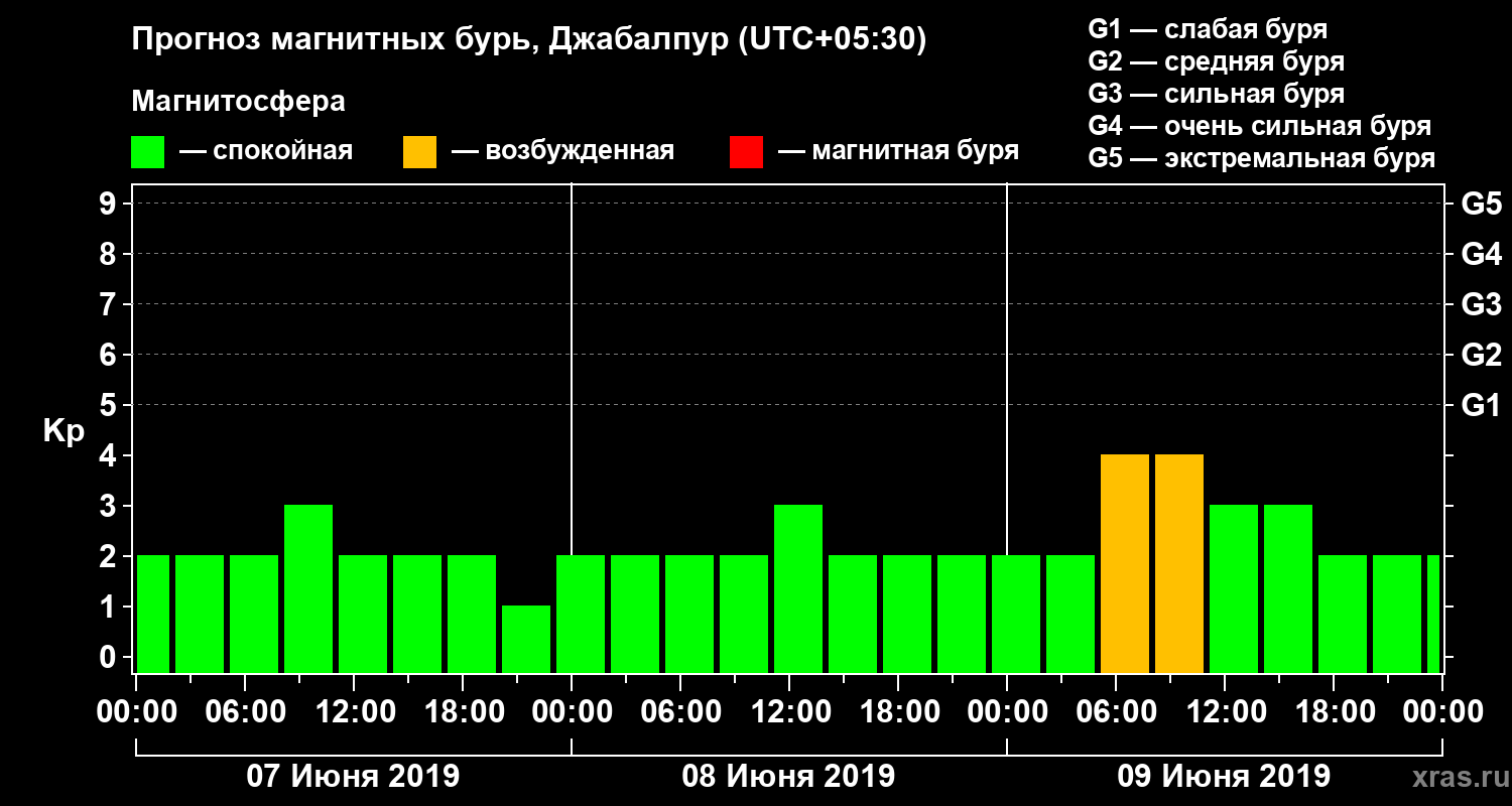 Прогноз магнитных бурь в Джабалпуре — 7 июня 2019 года