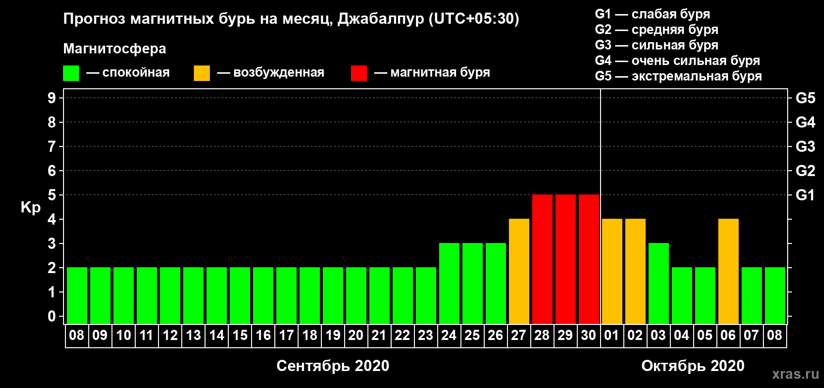 Прогноз магнитных бурь в Джабалпуре — 8 сентября 2020 года