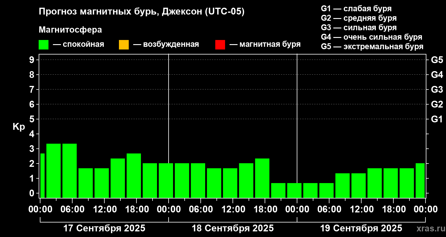 Прогноз магнитных бурь в Джексоне — 17 сентября 2025 года