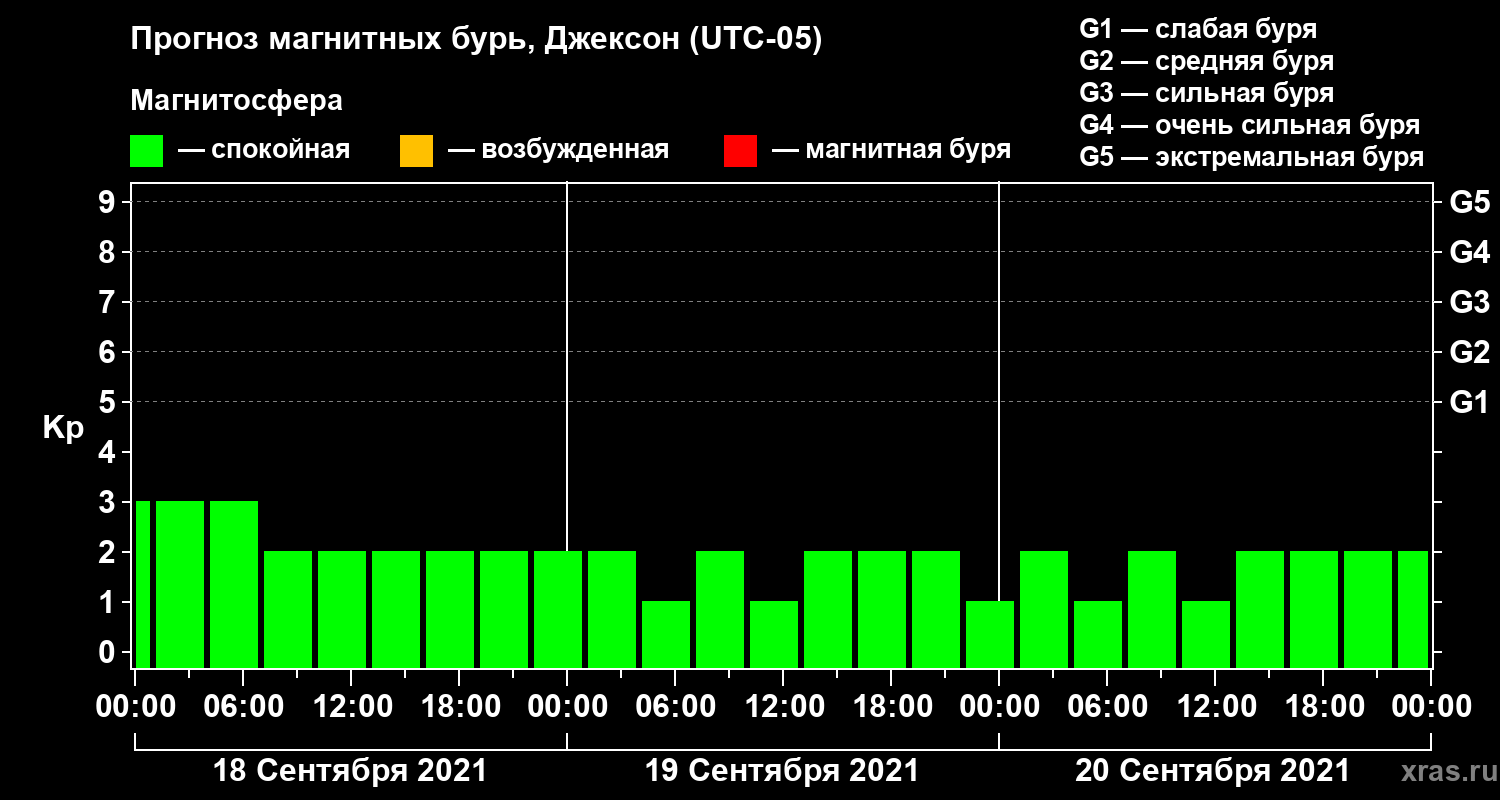 Прогноз магнитных бурь в Джексоне — 18 сентября 2021 года