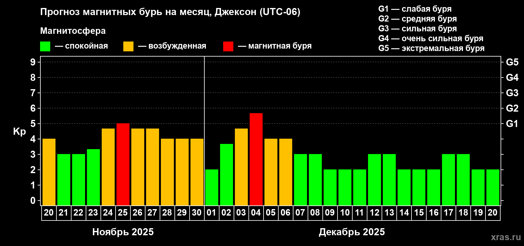 Прогноз магнитных бурь в Джексоне — 20 ноября 2025 года