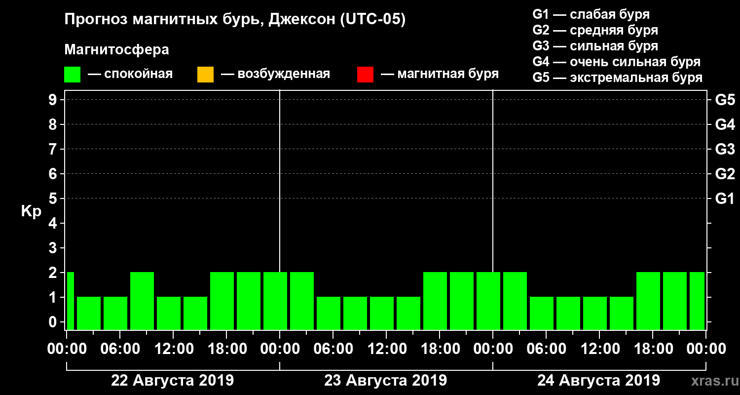 Прогноз магнитных бурь в Джексоне — 22 августа 2019 года