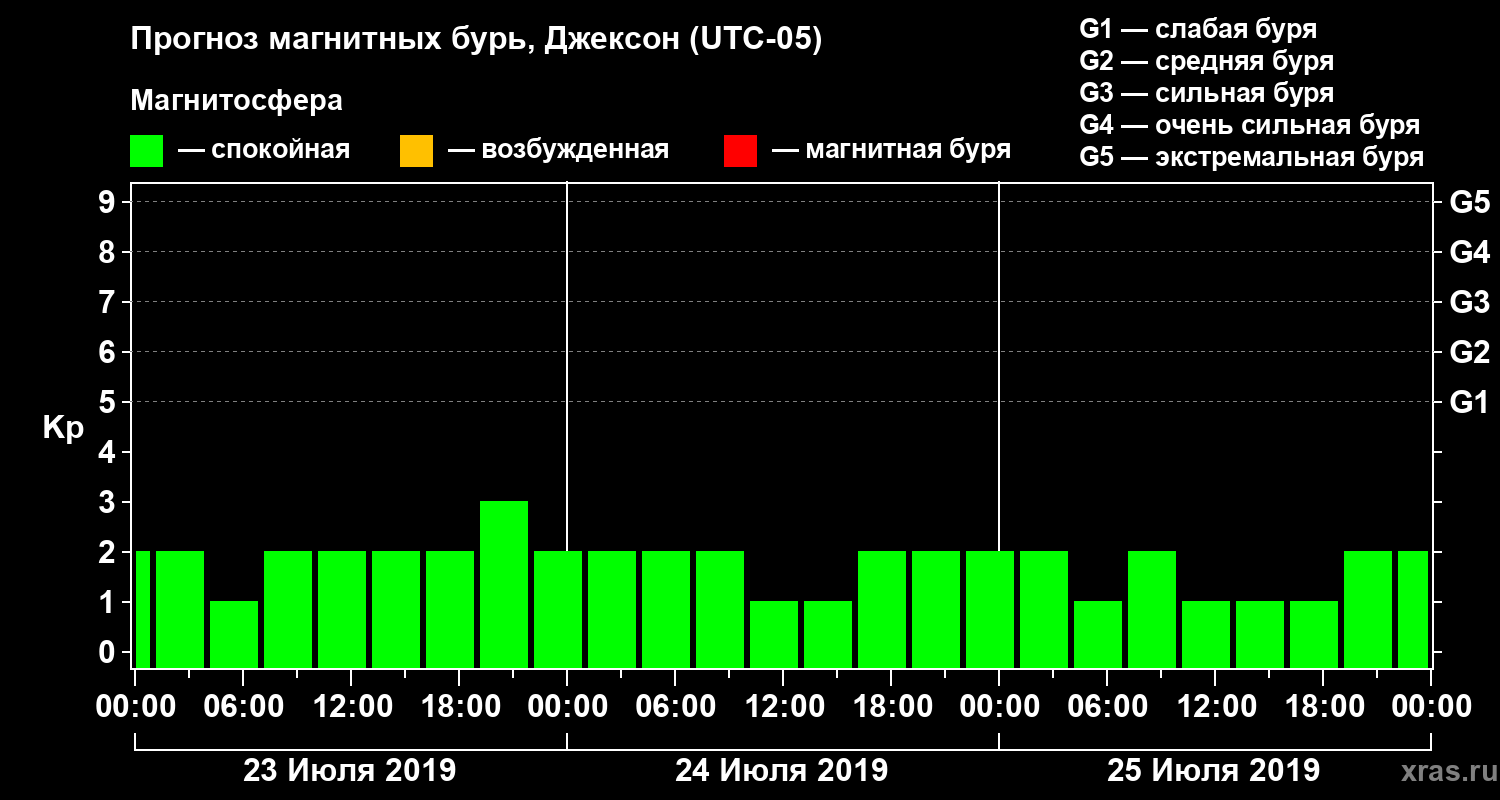 Прогноз магнитных бурь в Джексоне — 23 июля 2019 года