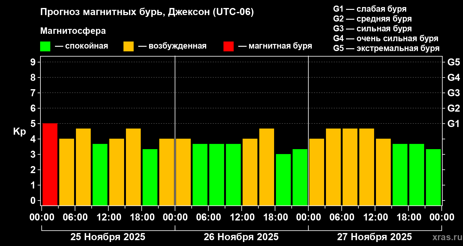 Прогноз магнитных бурь в Джексоне — 25 ноября 2025 года