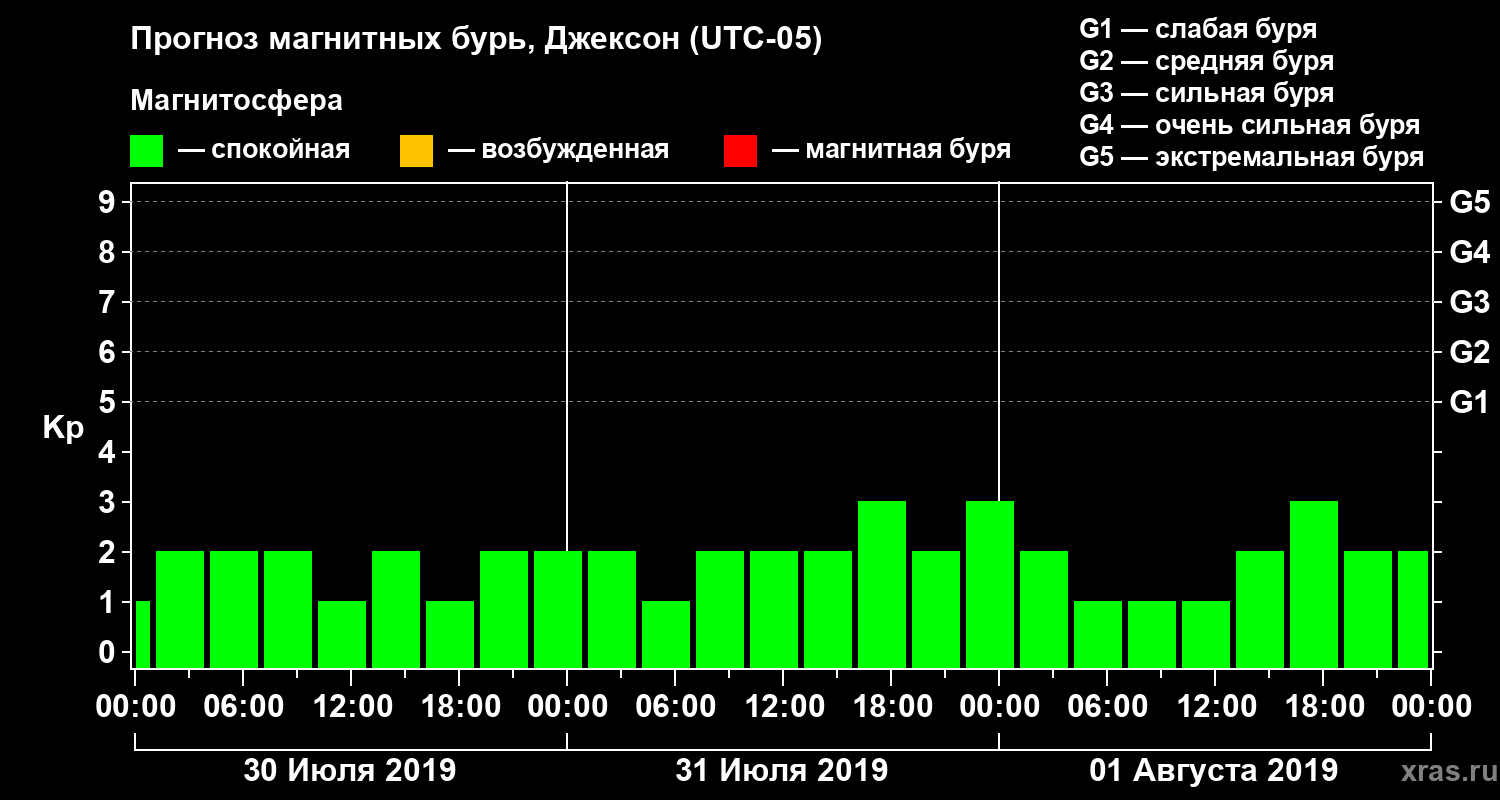 Прогноз магнитных бурь в Джексоне — 30 июля 2019 года