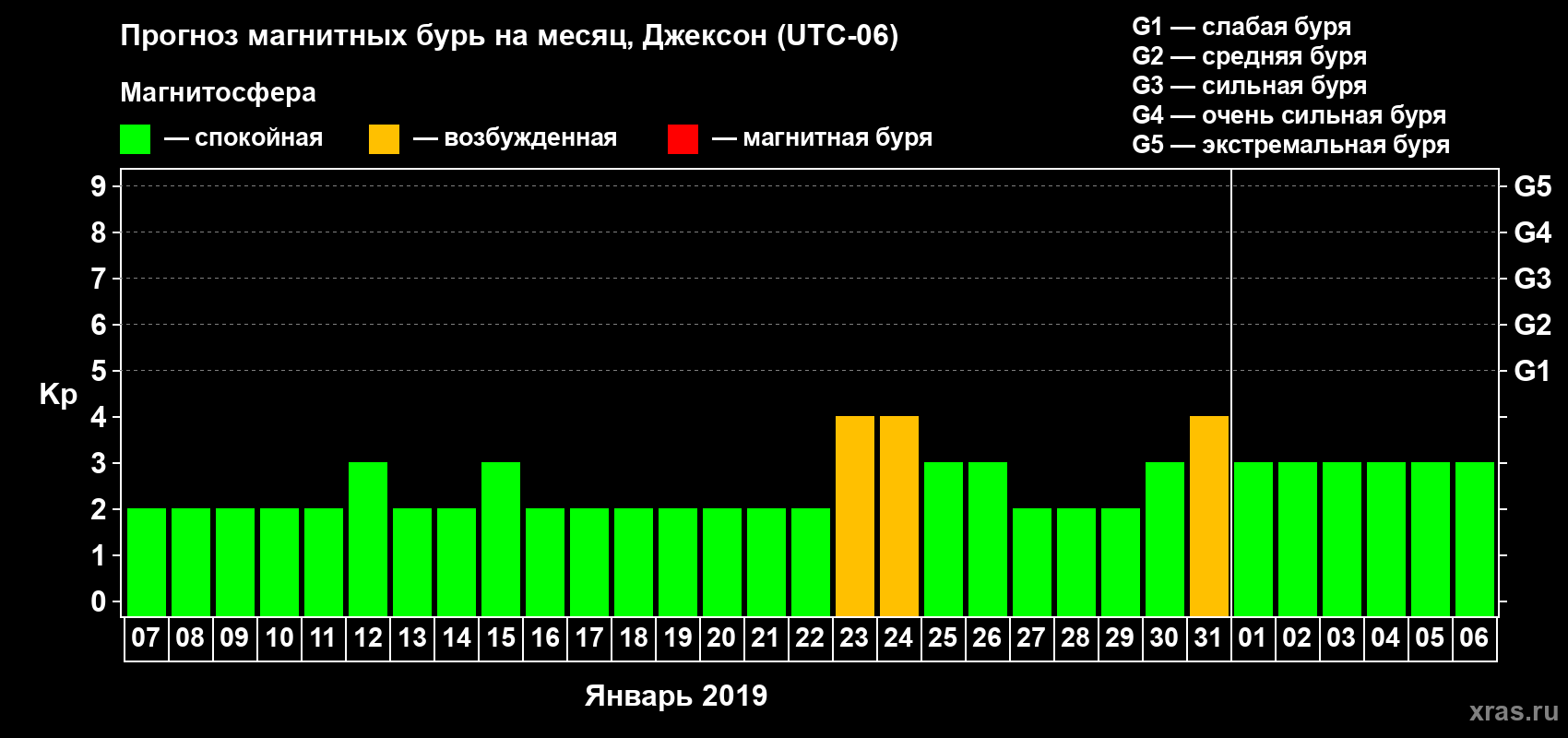 Прогноз магнитных бурь в Джексоне — 7 января 2019 года