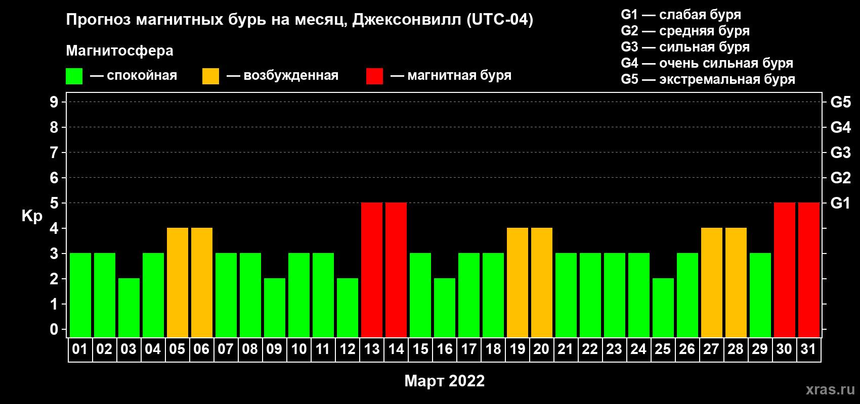 Прогноз магнитных бурь в Джексонвилле на 1 марта 2022 года