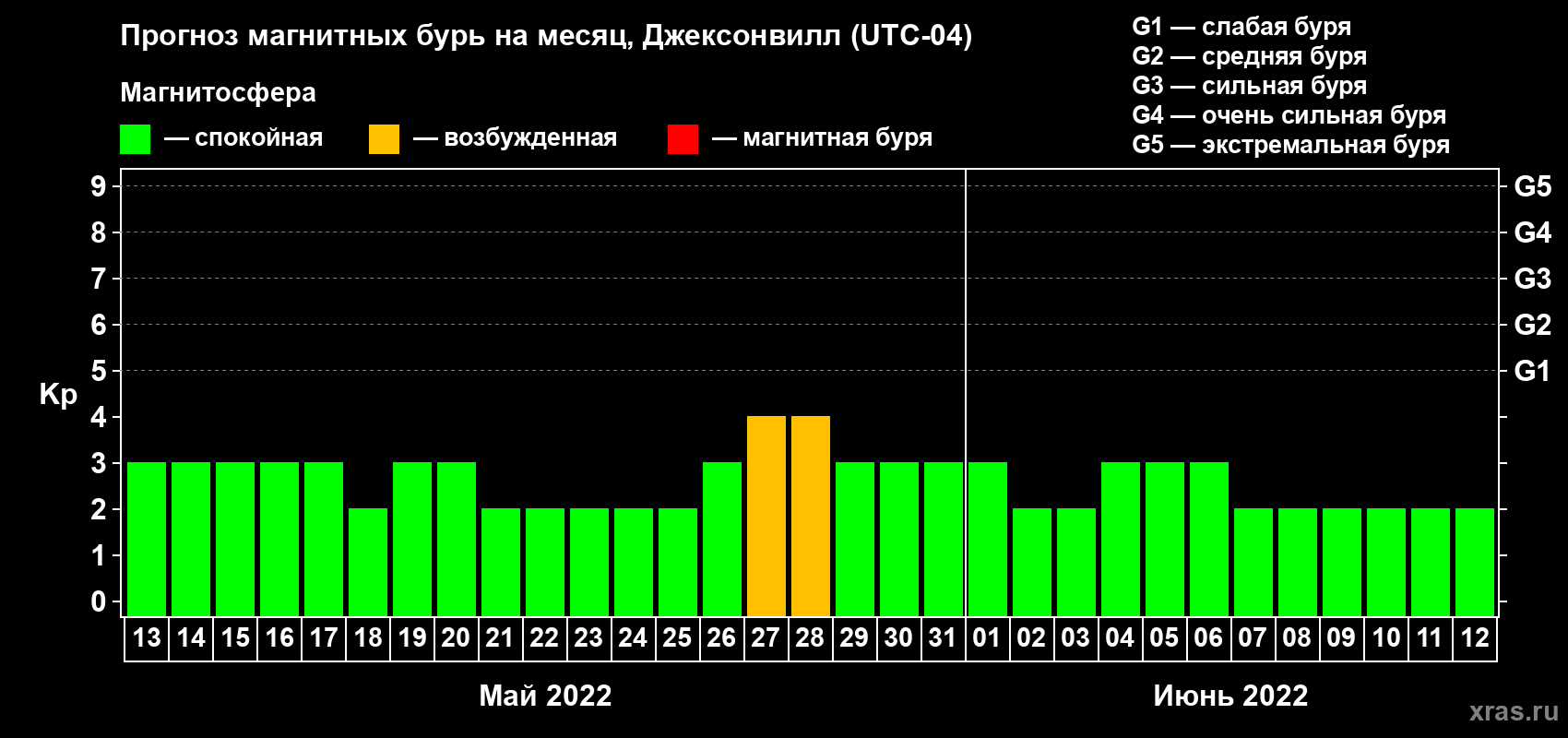 Прогноз магнитных бурь в Джексонвилле — 13 мая 2022 года