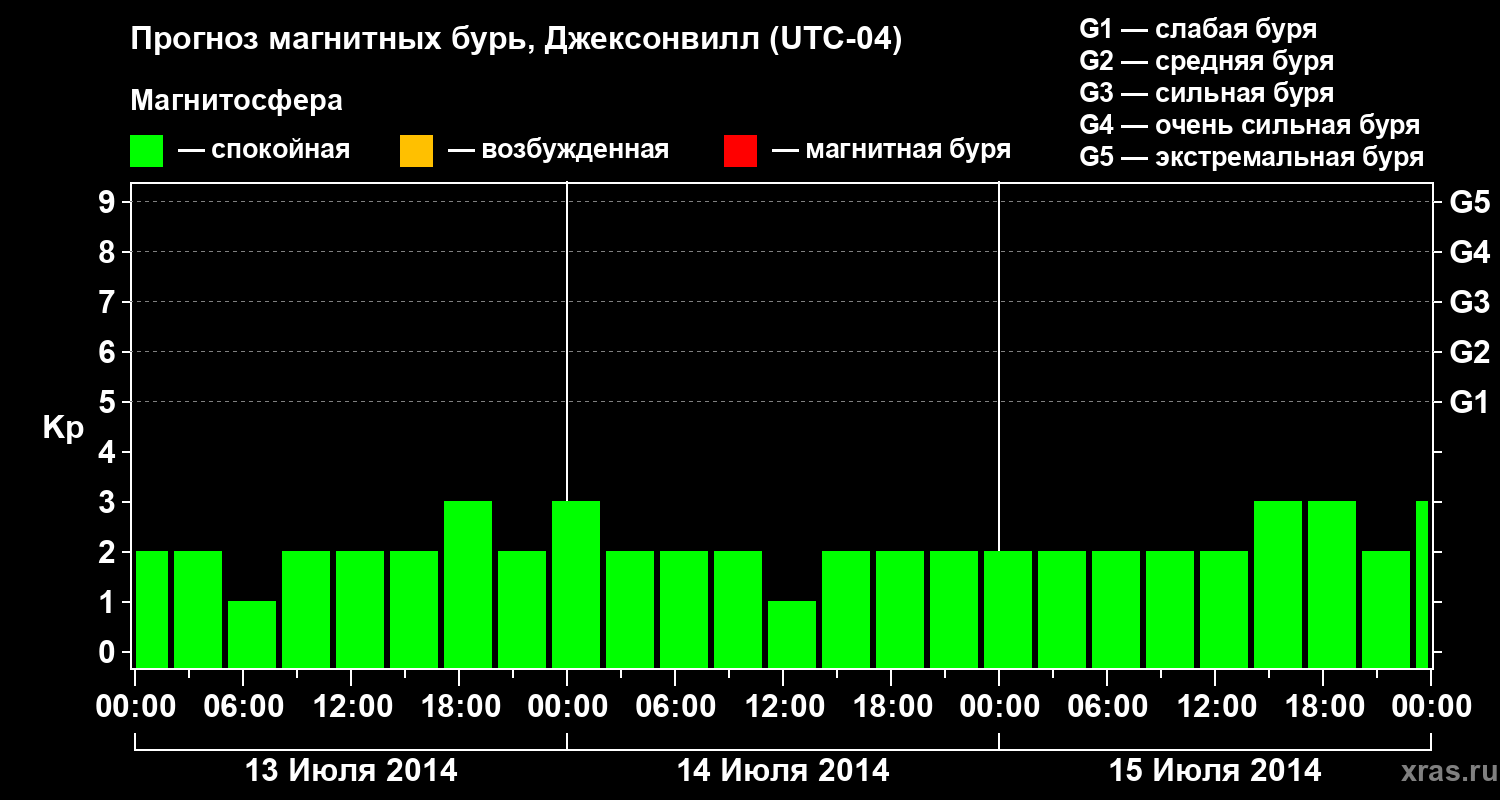 Прогноз магнитных бурь в Джексонвилле на 13 июля 2014 года