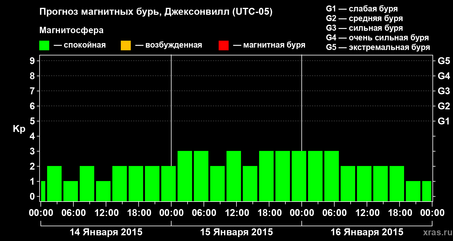 Прогноз магнитных бурь в Джексонвилле — 14 января 2015 года