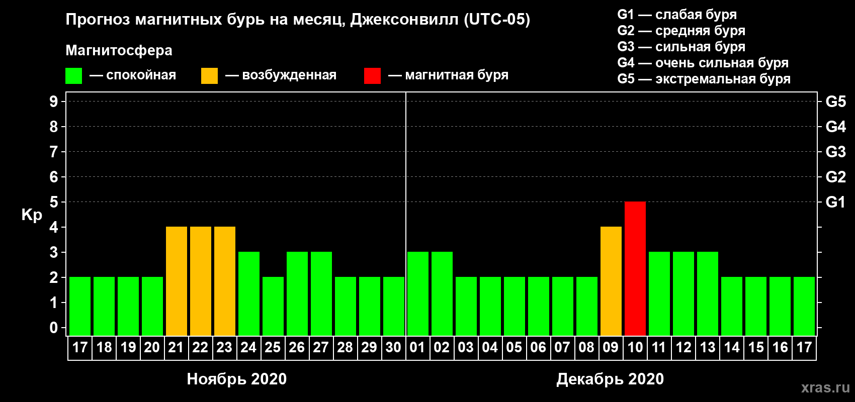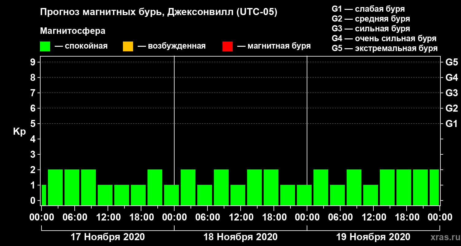 Прогноз магнитных бурь в Джексонвилле — 17 ноября 2020 года