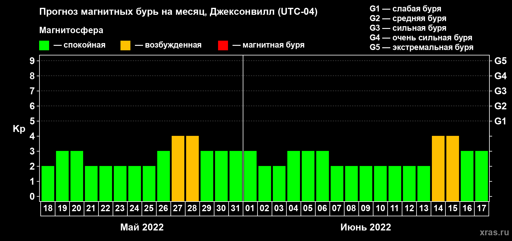 Прогноз магнитных бурь в Джексонвилле — 18 мая 2022 года