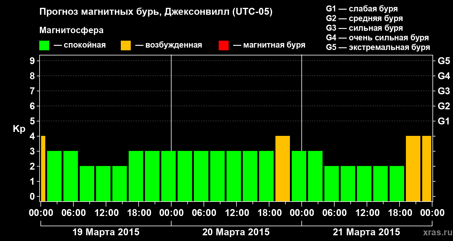 Прогноз магнитных бурь в Джексонвилле на 19 марта 2015 года