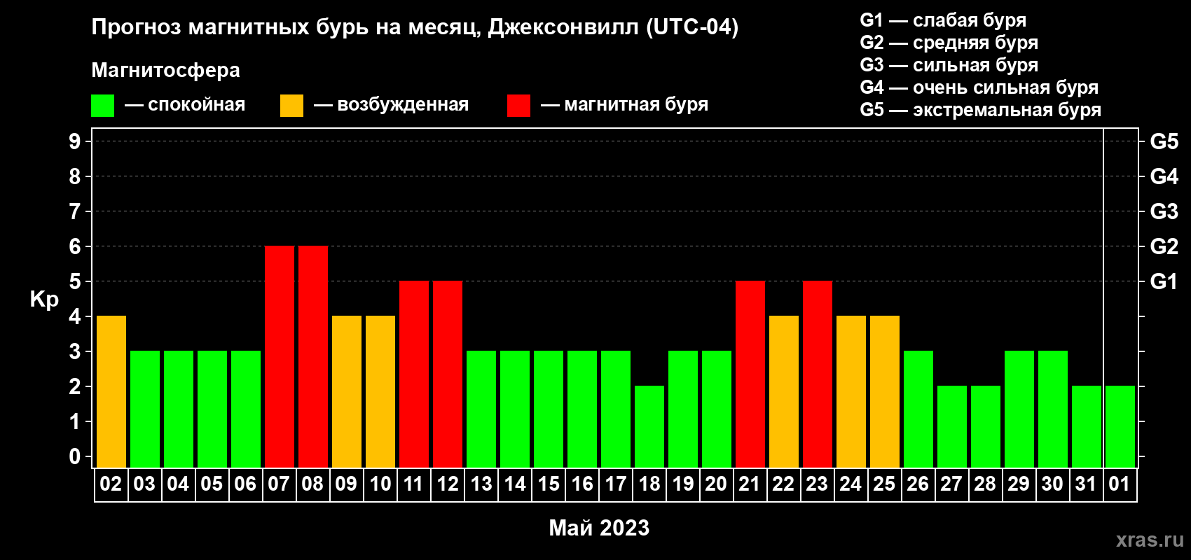 Прогноз магнитных бурь в Джексонвилле — 2 мая 2023 года