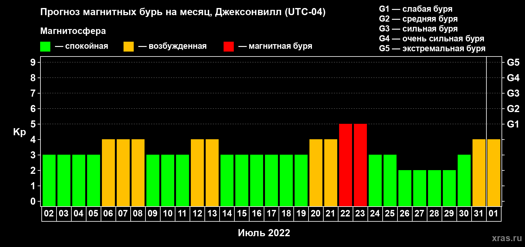Прогноз магнитных бурь в Джексонвилле — 2 июля 2022 года