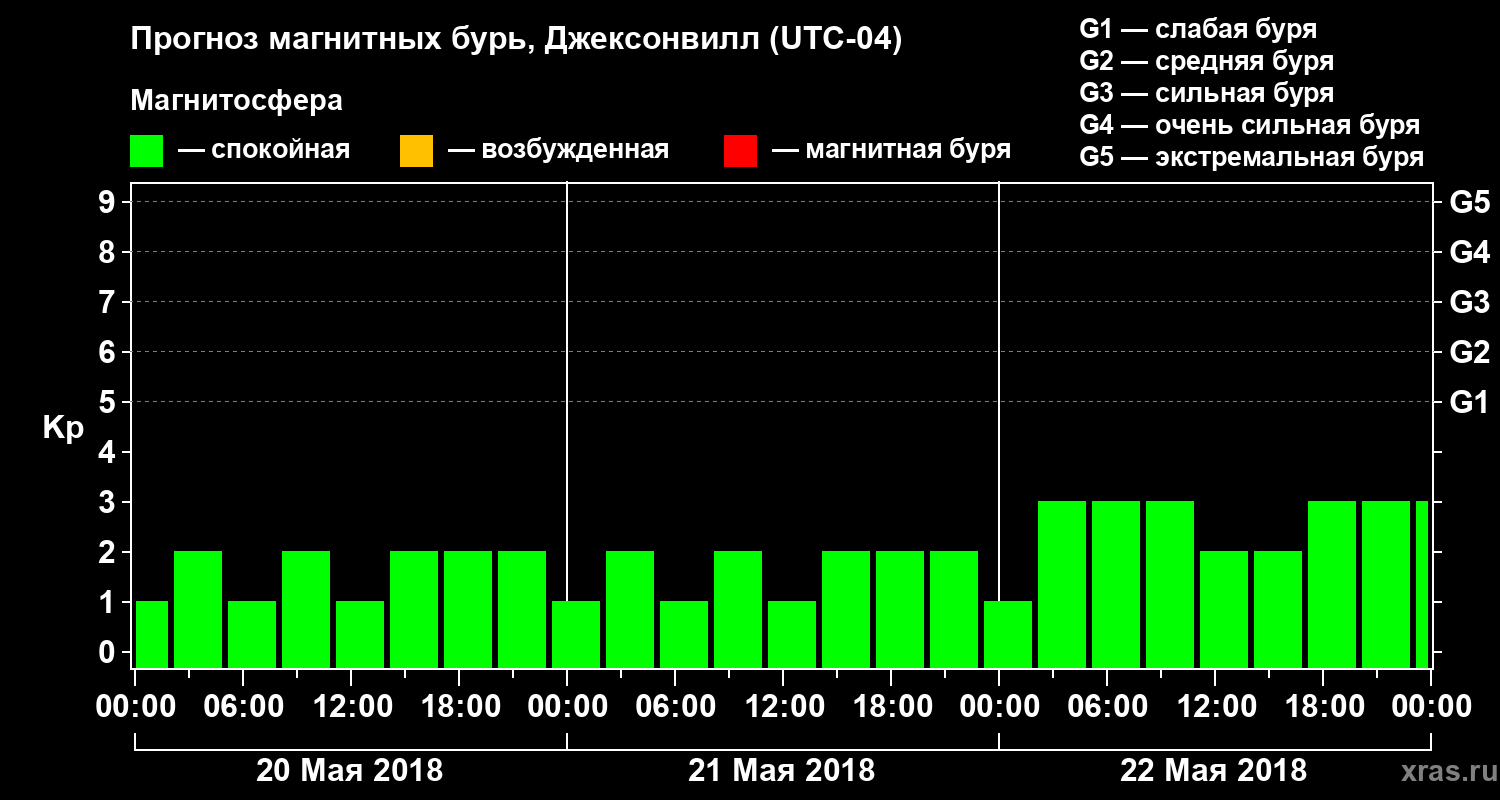 Прогноз магнитных бурь в Джексонвилле — 20 мая 2018 года