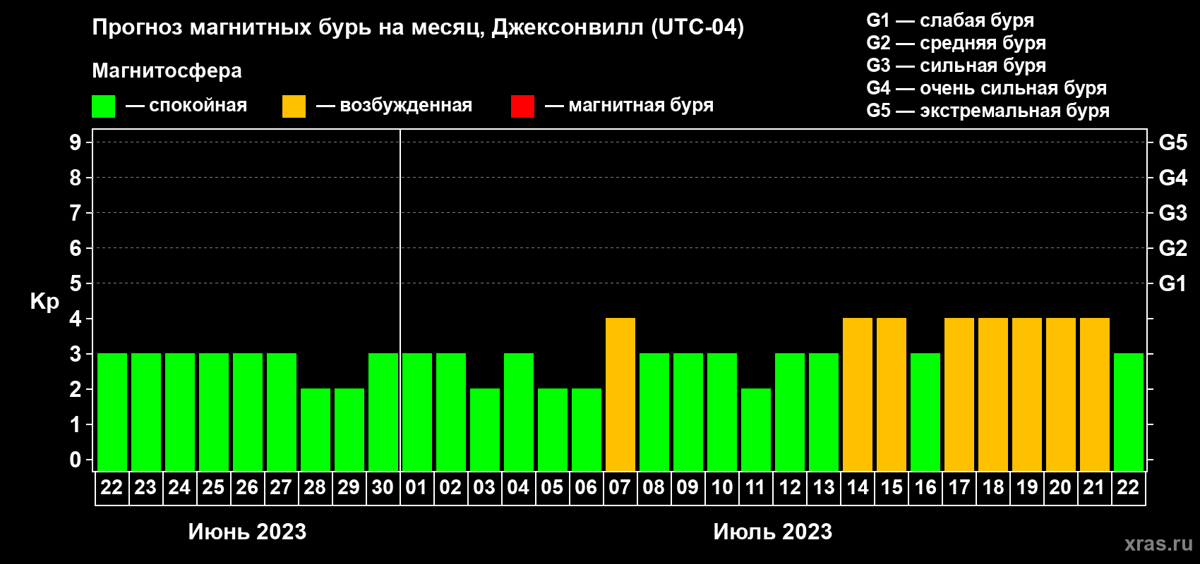 Прогноз магнитных бурь в Джексонвилле — 22 июня 2023 года