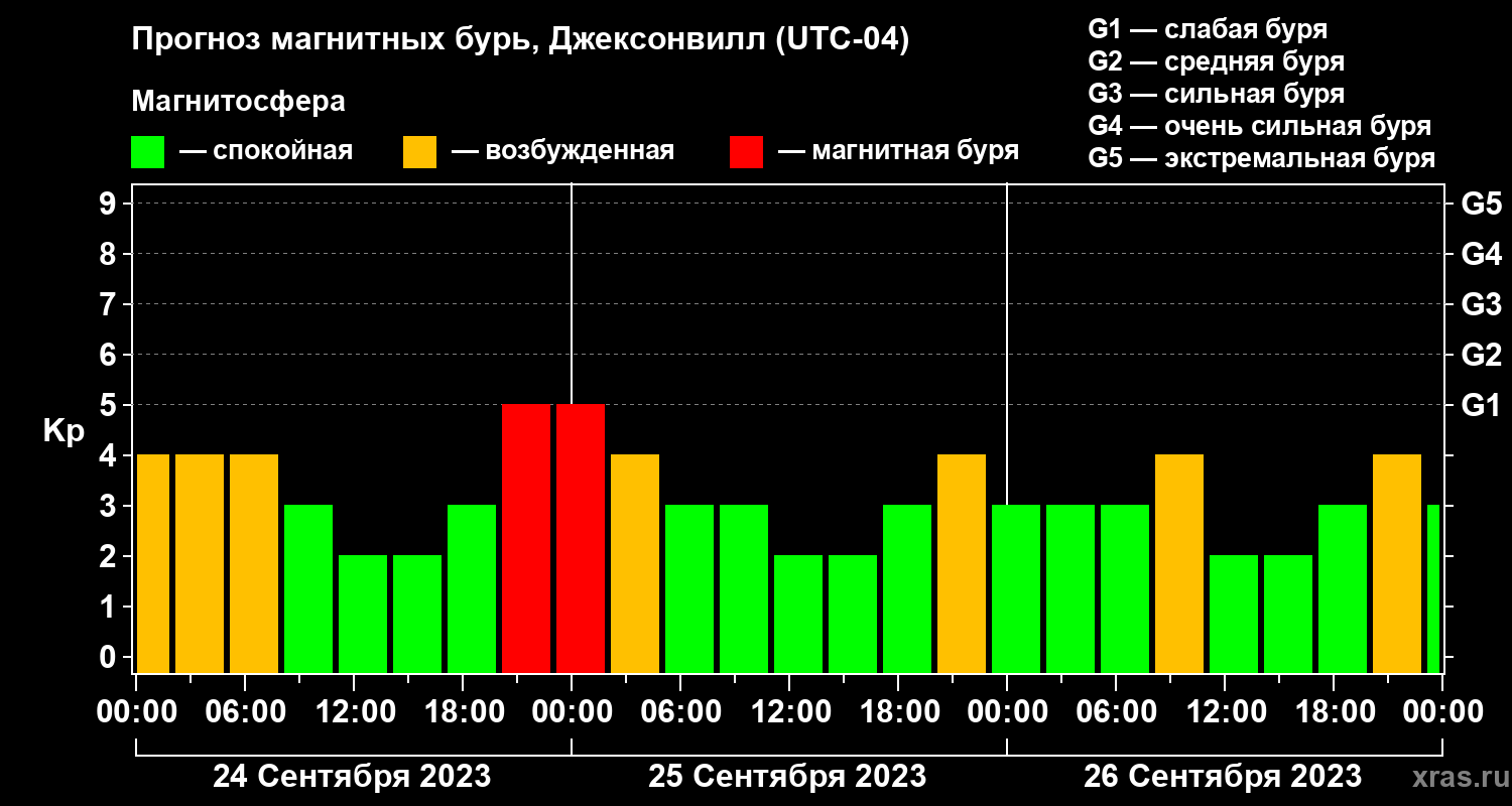 Прогноз магнитных бурь в Джексонвилле на 24 сентября 2023 года