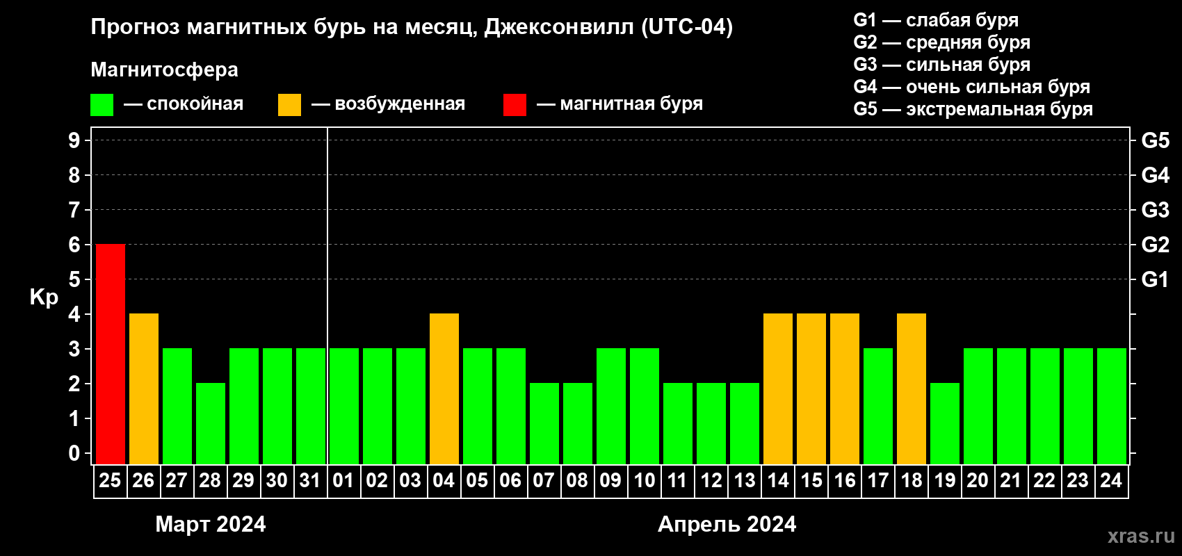 Прогноз магнитных бурь в Джексонвилле — 25 марта 2024 года