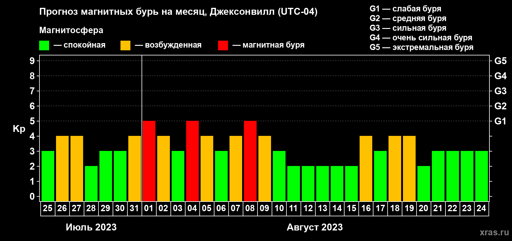 Прогноз магнитных бурь в Джексонвилле — 25 июля 2023 года