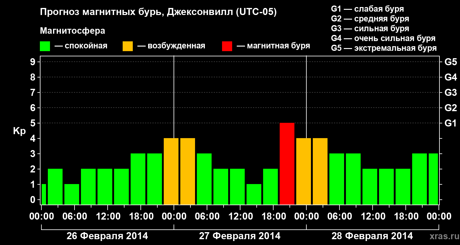 Прогноз магнитных бурь в Джексонвилле на 26 февраля 2014 года