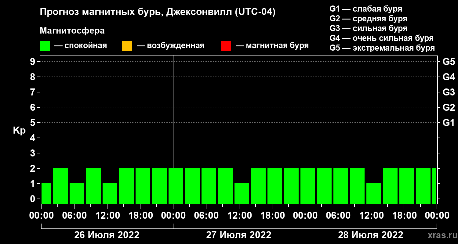 Прогноз магнитных бурь в Джексонвилле — 26 июля 2022 года