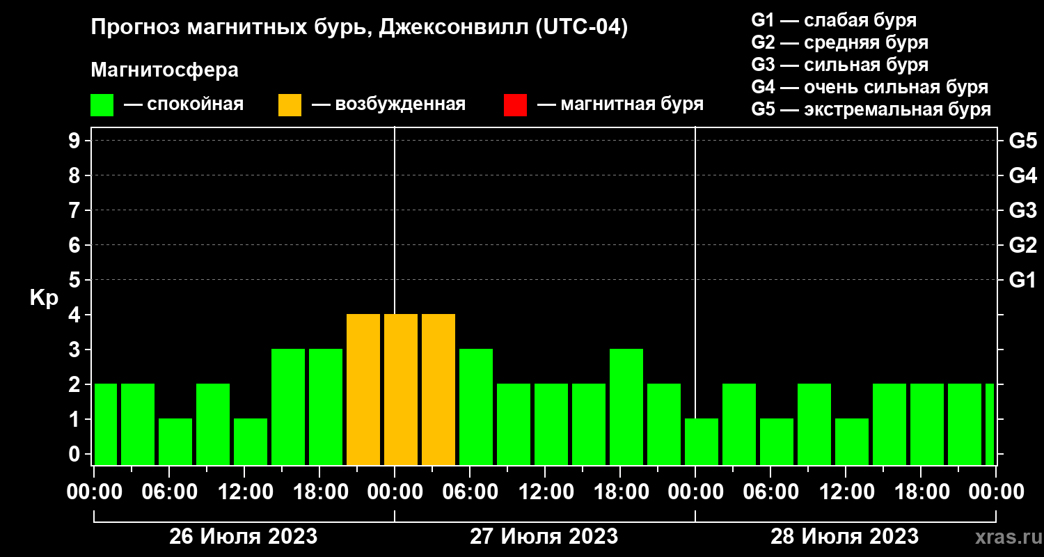 Прогноз магнитных бурь в Джексонвилле — 26 июля 2023 года